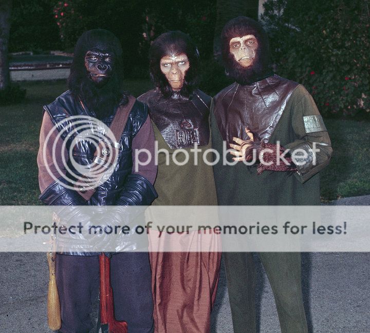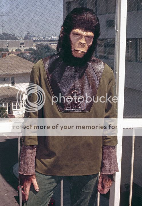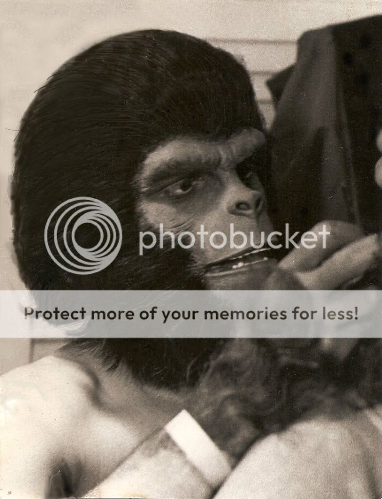 About 73 I had just moved to LA. The hair pieces were actual screen used I got from Ricky Schwartz. I'm making up another ape off camera. We were going to a local Con.